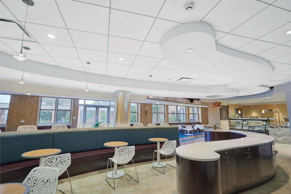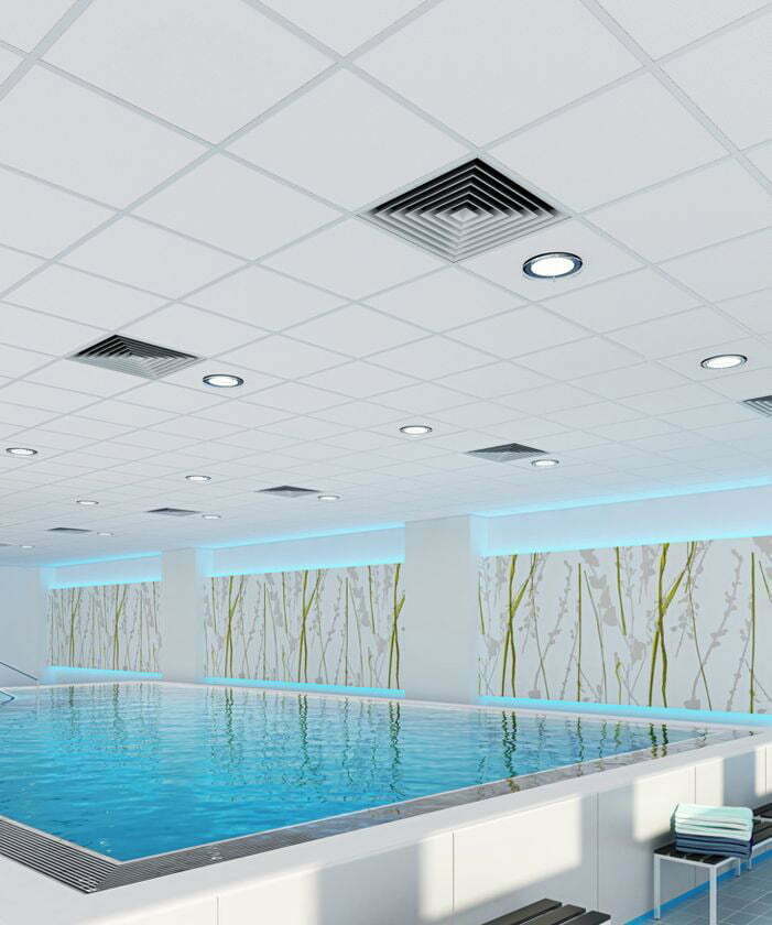 Une tuile acoustique souvent utilisée dans les salles d’urgence et stérile pour son pouvoir à contrôler la moisissure et les bactéries.